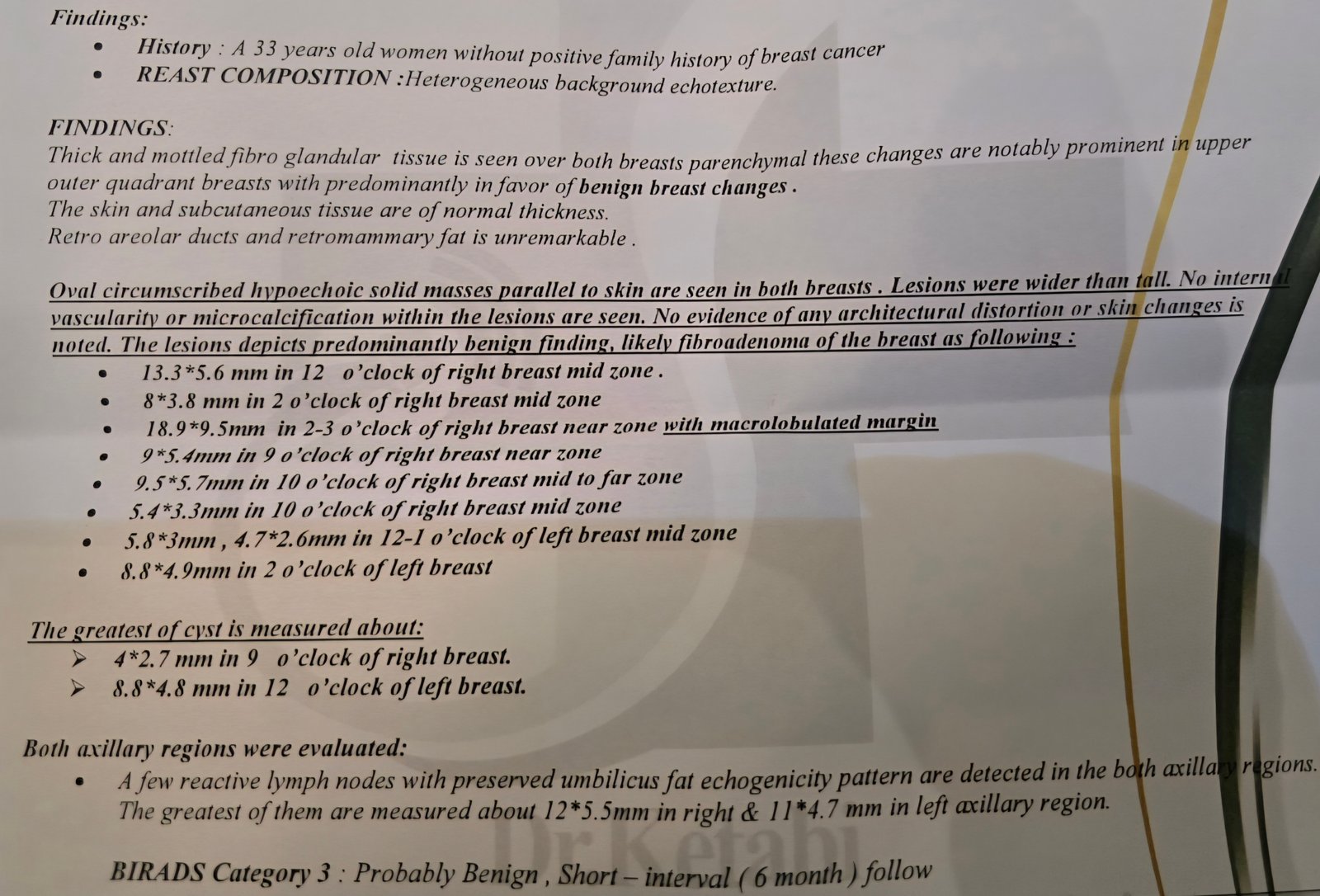 BIRADS 3 هست. سابقه خانوادگی ندارم